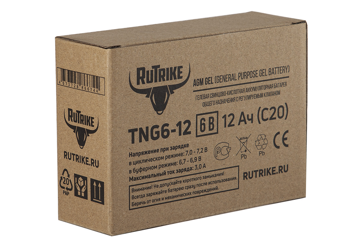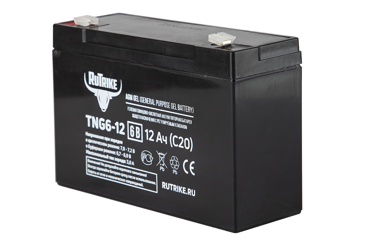 Тяговый аккумулятор RuTrike TNG6-12 (6V12A/H C20) - это 6-вольтовая аккумуляторная батарея изготовленная с использованием технологии GEL AGM (Absorbent Glass Mat + густой электролит внутри стекловолоконного сепаратора), что делает ее идеальной для использования в качестве основного или резервного источника питания в различных сферах применения, таких как: