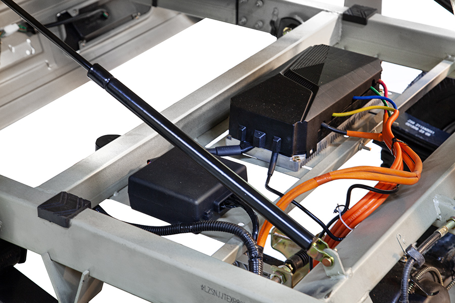 Мощный контроллер трицикла имеет возможность плавного старта даже на самом крутом подъёме. Информативная и удобная цифровая приборная панель показывает рабочее напряжение, уровень заряда аккумуляторов, скорость, а также температуру воздуха. Электрический трицикл Rutrike Эксперт ПРО Плюс имеет вместительный отсек под сидением водителя, закрывающийся на ключ, его можно использовать для перевозки инвентаря, инструментов и личный вещей.