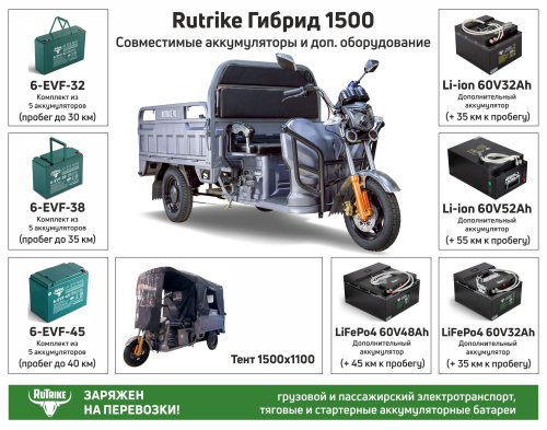 Электрический трицикл Rutrike Гибрид 1500 60V1000W не требует регистрации в ГИБДД, а водителю для езды понадобится лишь обычное водительское удостоверение любой категории.
