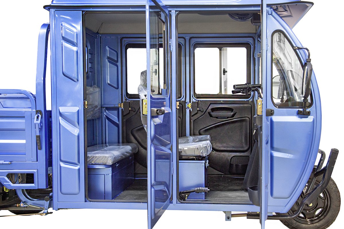 Удобный и практичный электрический трицикл Rutrike Рейс 1300 — идеальный вариант для использования на территориях гостиничных и складских комплексов, для доставки грузов на небольшие расстояния, для эксплуатации на дорогах общего пользования и закрытых территориях, в том числе внутри помещений.