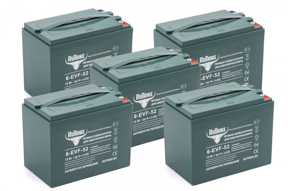 Аккумулятор RuTrike 6-EVF-52 - специальная тяговая батарея для тяжелой работы. Количество полных циклов 80% разряда / заряда превышает 700.