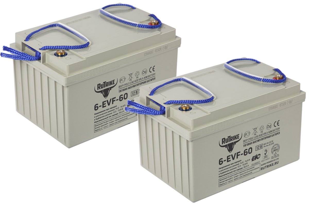 Данный комплект состоит из 2 аккумуляторов RuTrike 6-EVF-60