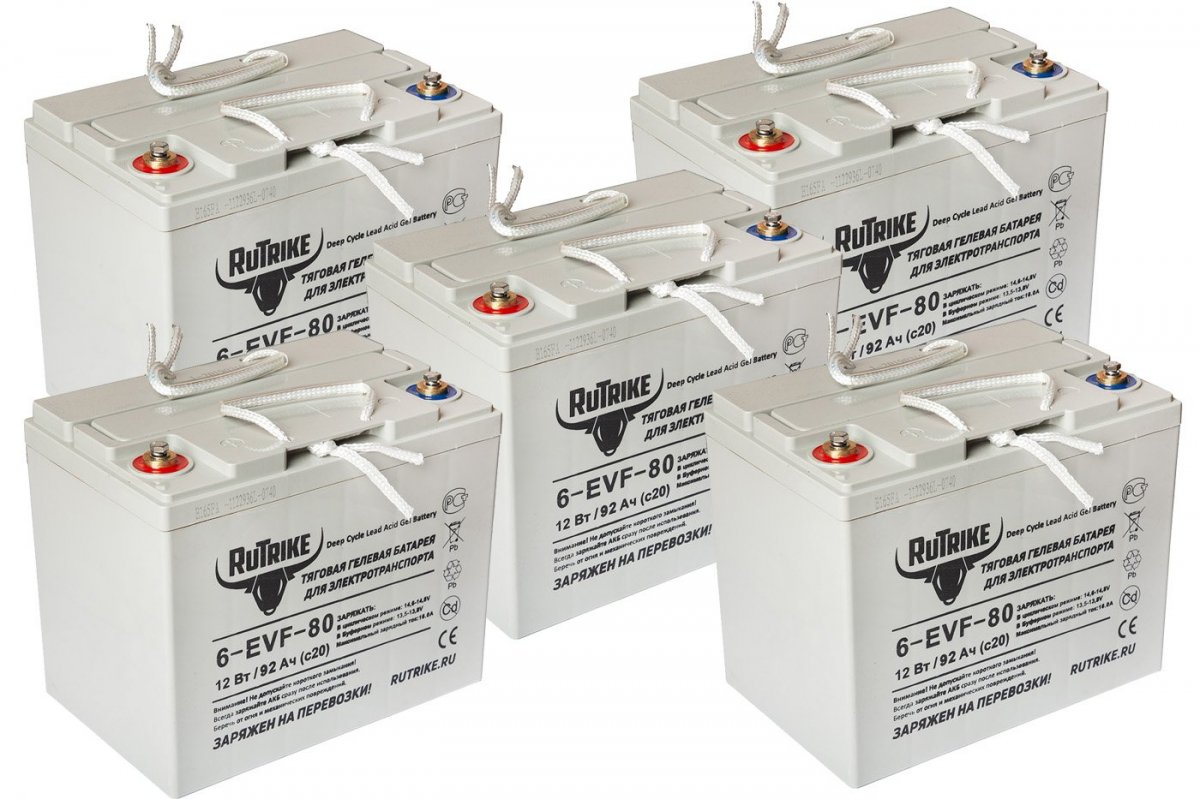 Аккумулятор RuTrike 6-EVF-80 - специальная тяговая батарея для тяжелой работы. Количество полных циклов 80% разряда / заряда превышает 700.