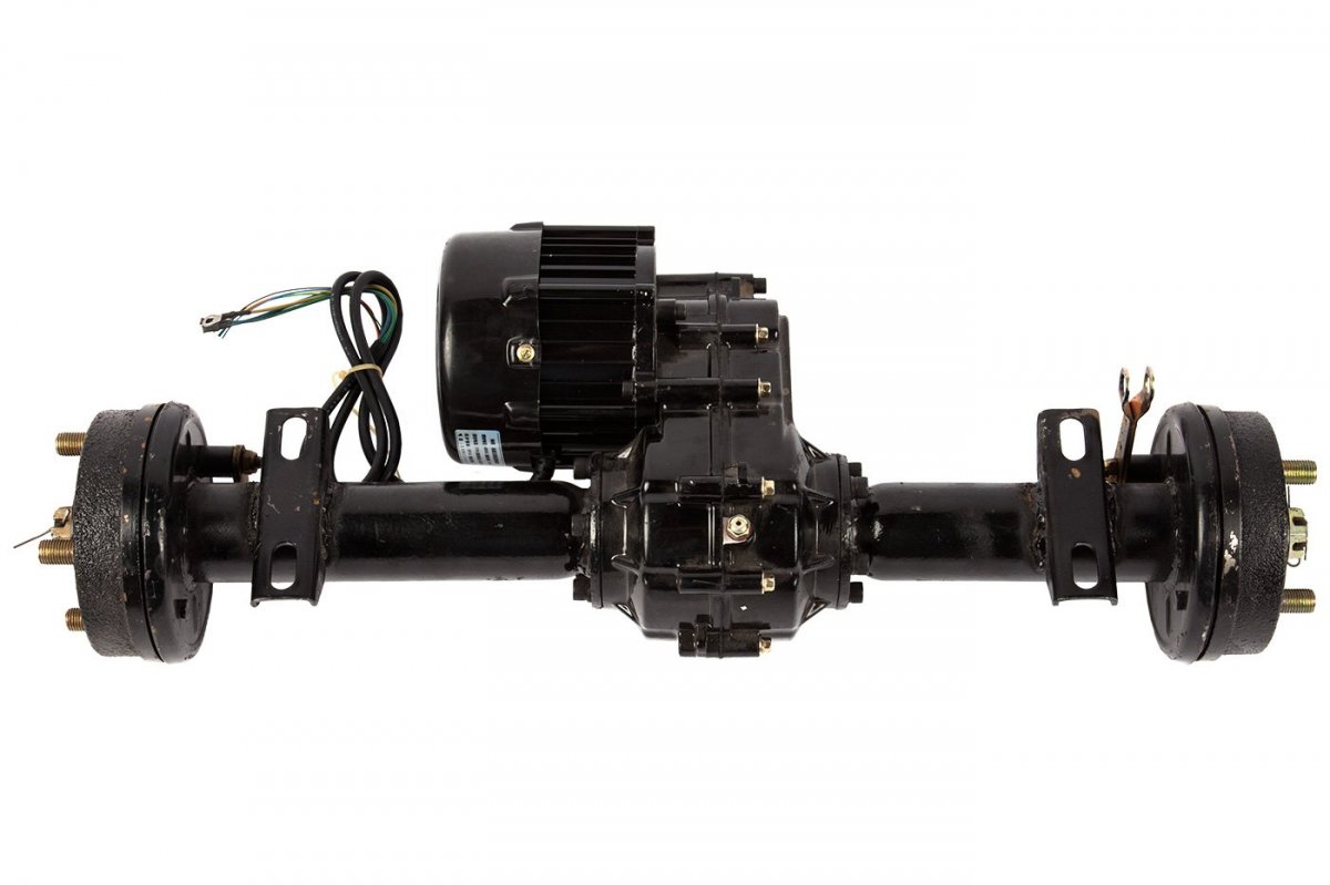 Задний мост необходим для передачи крутящего момента от мотора к ведущим колесам, также он соединяет задние колеса между собой. Данный мост для трициклов Green City S1 и S2 [ https://www.eltreco.ru/market/catalog/electroscooter/pfilter/brand-is-green-city/ ] поставляется сразу в сборе с мотором. Трицикл способен разгоняться до 25км/ч и перевозить до 90 кг груза.