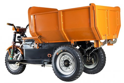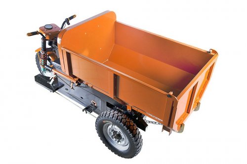 Практичный и мощный думпер с электрическим двигателем на 1200W и батареей емкостью 45Ah. Может преодолевать до 30 км на одном заряде, разгоняясь при этом до 20 км/ч и везя груз весом до 900 кг. Эту технику можно использовать на плохой неровной дороге. Благодаря мощному мотору, он может проходить по грязи и снегу, поэтому подходит для использования круглый год.