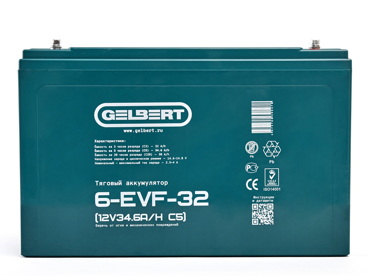 Gelbert 6-EVF-32 — это необслуживаемая аккумуляторная батарея, изготовленная по технологии AGM с системой рекомбинации газов (VRLA). Батарея произведена с использованием технологии внутреннего формования. В её свинцовых пластинах, которые имеют увеличенную толщину по сравнению со стандартными аналогами, применяется экологичный запатентованный сплав, не содержащий кадмия и мышьяка. Сепаратор из плотного углеволокна пропитан электролитом, созданным по технологии NANO GEL. Электролит находится в сгущённом состоянии, что исключает утечки и необходимость долива воды на протяжении всего срока службы.