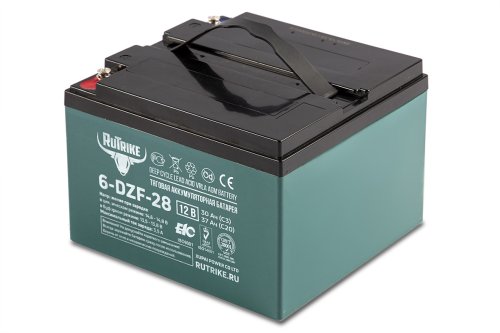 Необслуживаемая аккумуляторная батарея Rutrike 6-DZF-28 с системой рекомбинации газов (VRLA) произведена по технологии AGM. Батарея выполнена по технологии внутреннего формования. В толстых свинцовых пластинах используется экологичный сплав без кадмия и мышьяка.
