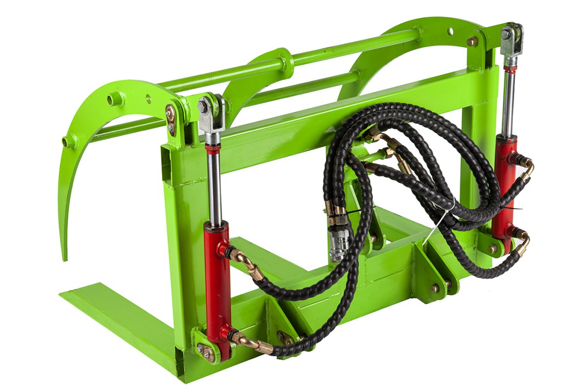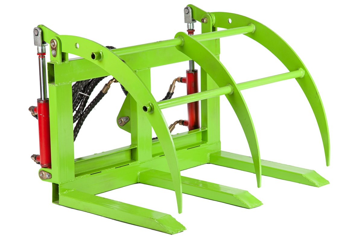 Вилы для уборки сена и других целей с гидравлическим подъёмным и открывающимся механизмом.