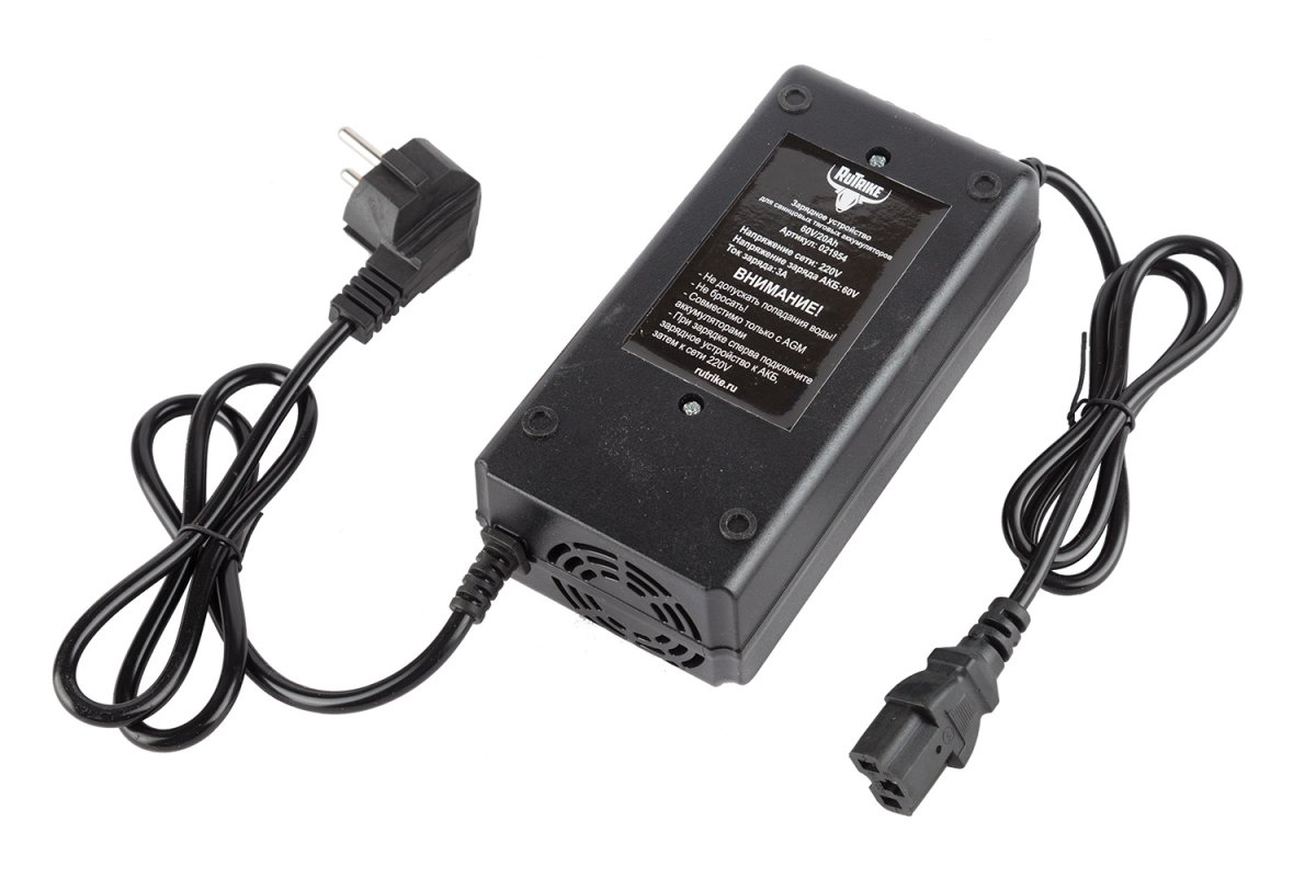 Зарядное устройство для свинцовых тяговых аккумуляторов 60V20A/H (3.0A) обеспечивает безопасную зарядку комплектов тяговых AGM аккумуляторных батарей Rutrike 20 А·ч с суммарным напряжением 60 В и аналогичных аккумуляторных батарей других производителей.